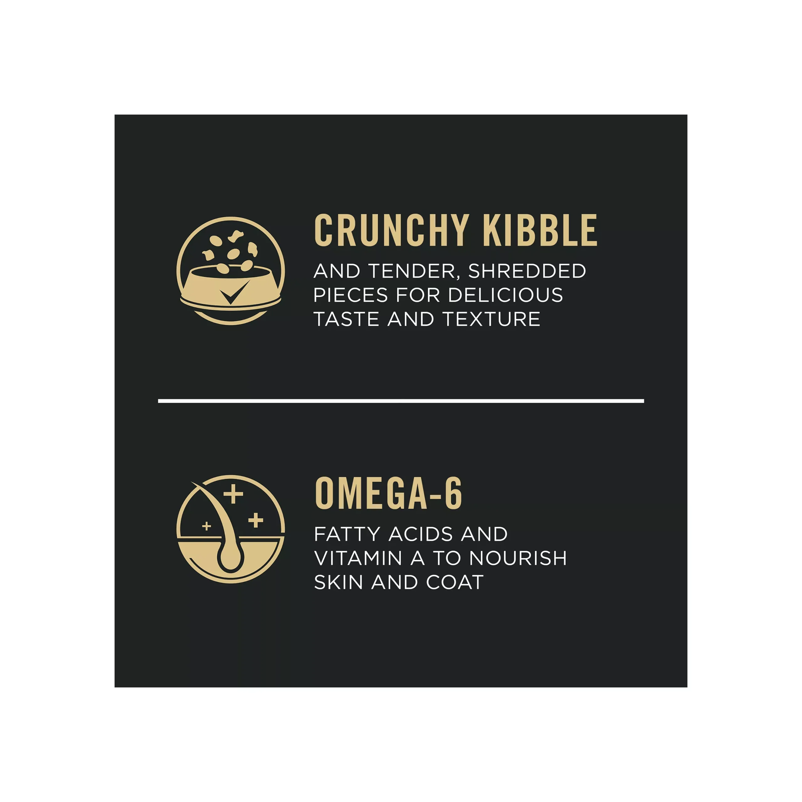• Hard kibble combined with tender, shredded pieces for taste and texture dogs love